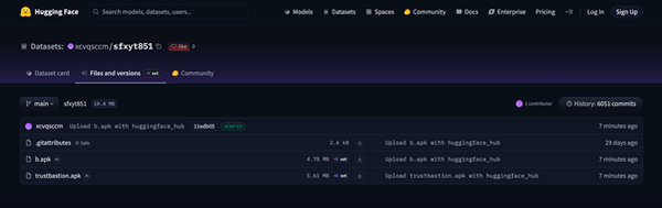 - O serviço online Hugging Face é usado para hospedar e distribuir APKs perigosos.
